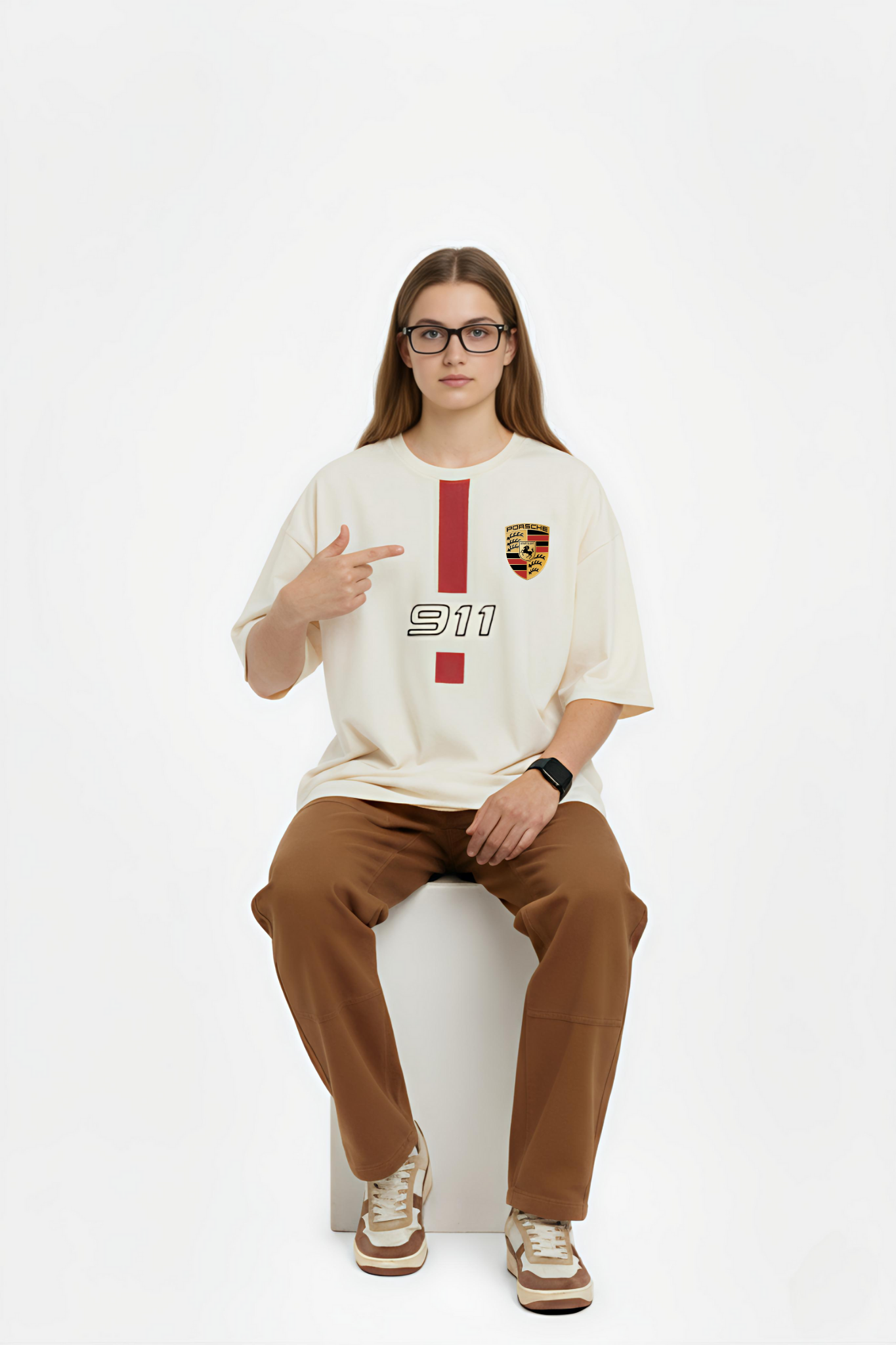 The Forever Classic oversized Tee captures the timeless spirit of automotive excellence. Designed in a soft beige tone with a bold red racing stripe and iconic 911 detailing, it pays homage to an era when craftsmanship and class ruled the roads.